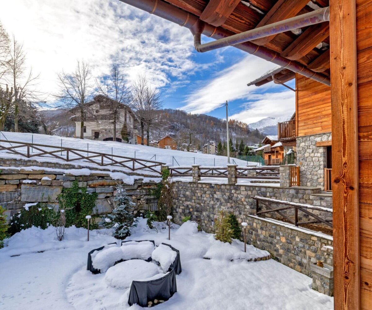 9 or 10 traditionally built ski Chalets (*), independent and semi-independent houses in the gardens of the historical re-built Villa Almellina, in between the slopes and the center of the charming pedestrian village of Limone (at 5 minutes walking to center/slopes).